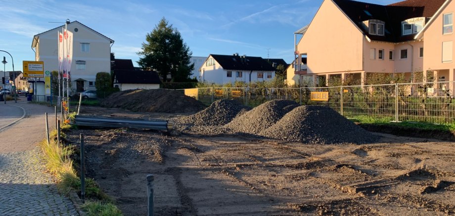 In der Hauptstraße Höhe Marktplatz bereitet die Firma Dobler die Umbauarbeiten an den beiden Haltestellen vor. Hier werden die nächsten beiden Bushaltestellen barrierefrei umgebaut. Gefördert wird das durch das Landesgemeindeverkehrsfinanzierungsgesetz (LGVFG), einem Landesprogramm zur Förderung des öffentlichen Personennahverkehrs.