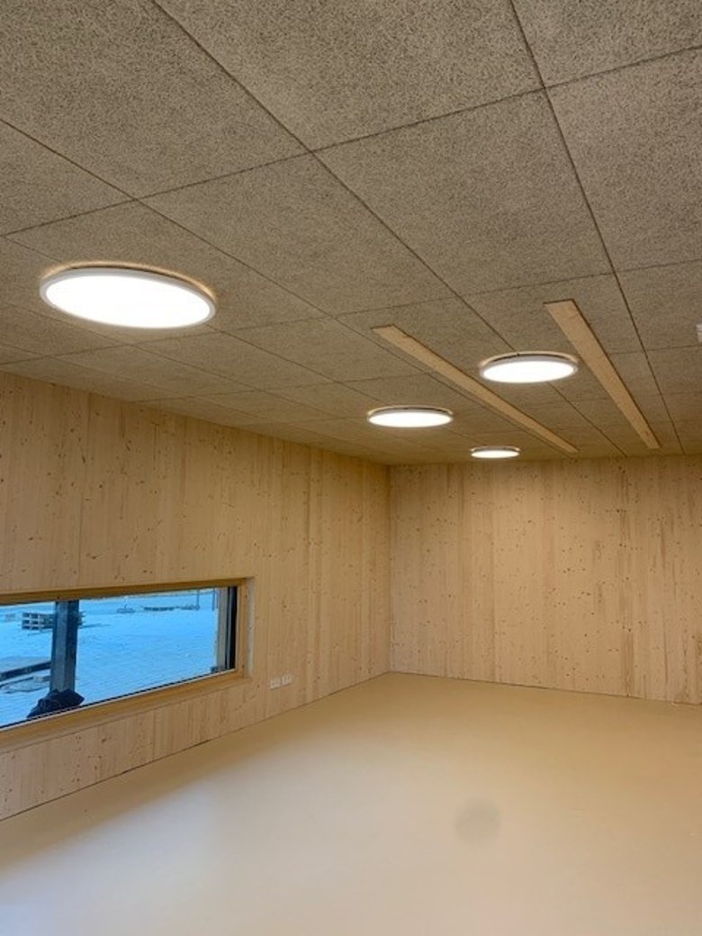 n der KiTa Hegenberg wurden im August die Fliesen im Obergeschoss in den Sanitärräumen verlegt. Der Sicht- und Blendschutz wurde montiert und die Fassade verkleidet. Auch die Decke im Obergeschoss ist fertig verschlossen.