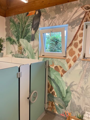 Das Kinderhaus Buch ist ein familiäres Ganztageshaus. Die Räumlichkeiten sind auf angenehme Weise überschaubar und gemütlich. Viele Kinder verbringen einen Großteil des Tages hier. Aus diesem Grund ist es dem Kinderhausteam besonders wichtig, dass sie sich auch in den Waschräumen wohl fühlen. Sie sollen eine kindgerechte und wohlige Atmosphäre haben.