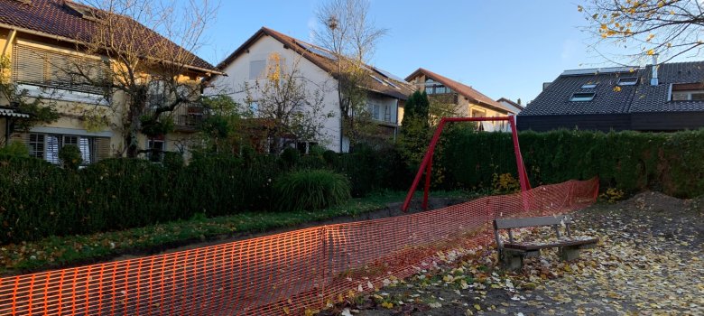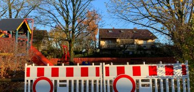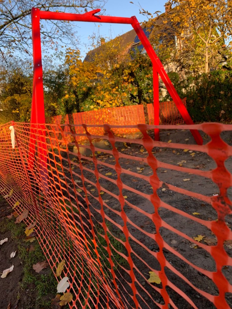 Bis die Bauarbeiten abgeschlossen sind, ist der Spielplatz ‚Arnold-Böcklin-Straße gesperrt. Kinder und Jugendliche werden gebeten, die Sperrung zu respektieren und weder die im Bau befindliche Seilbahnfläche zu betreten noch auf den Seitenpfosten herumzuturnen.