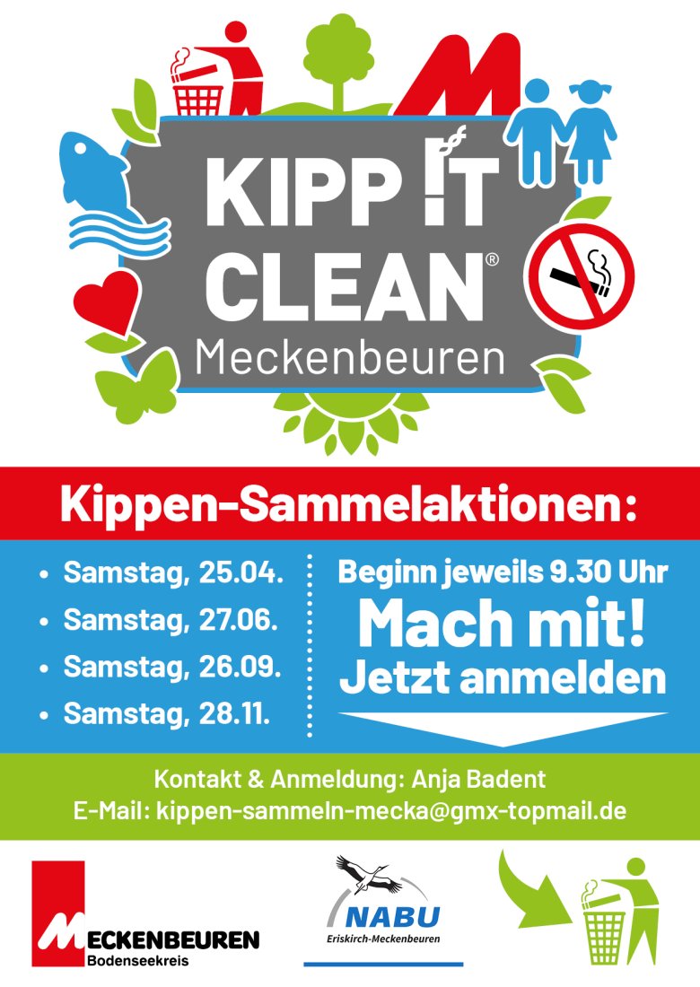Mach mit beim Kippen sammeln von Gemeinde Meckenbeuren und NABU Eriskirch-Meckenbeuren. Treffpunkt 9.30 Uhr Kultur am Gleis 1 Fahrradständer. Mehr Infos auf der NABU-Homepage.