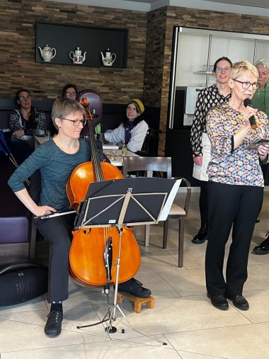 Die Gäste erwartete ein buntes Programm: Neben Kaffee, Tee und selbstgebackenem Kuchen (zum Selbstkostenpreis) gab es anlässlich der feierlichen Eröffnung klangvolle Töne von Cellistin Mathilde Schweiger-Stadler. Brettspiele, Bücher, Musik und Raum für kreative Aktivitäten sorgen auch an den kommenden Sonntagnachmittagen dafür, dass keine Langeweile aufkommt. Viele Gäste nutzten die Gelegenheit, neue Kontakte zu knüpfen.