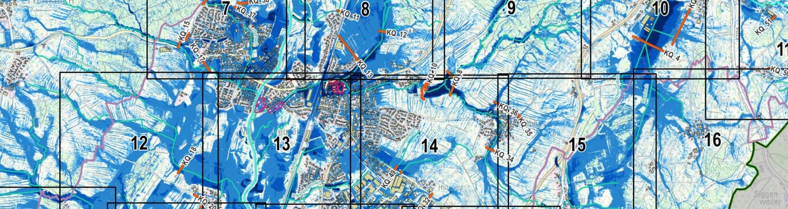Detaillierte Starkregen-Karten, die unser Gemeindegebiet betreffen, zum Download